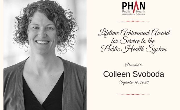 On September 16, 2020, at the Nebraska Public Health Conference, PHAN honored Colleen Svoboda with a Lifetime Achievement award in recognition for “her impact on our public health system” and her commitment to social justice to ensure health equity in the community. Read the full PHAN award presentation here.