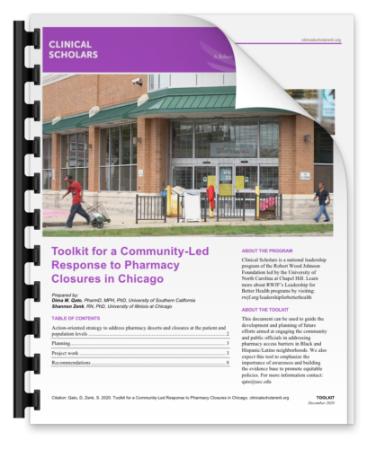 This document can be used to guide the development and planning of future efforts aimed at engaging the community and public officials in addressing pharmacy access barriers in Black and Hispanic/Latino neighborhoods. We also expect this tool to emphasize the importance of awareness and building the evidence base to promote equitable policies.