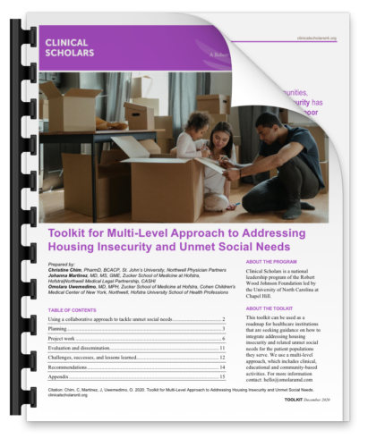 This toolkit can be used as a roadmap for healthcare institutions that are seeking guidance on how to integrate addressing housing insecurity and related unmet social needs for the patient populations they serve. We use a multi-level approach, which includes clinical, educational and community-based activities.